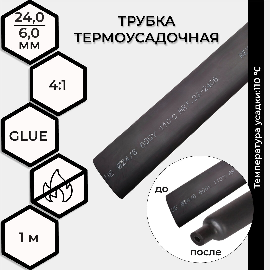 10 цен на Термоусадка клеевая двустенная 24,0 / 6,0 мм, (4:1), черная 1 м REXANT