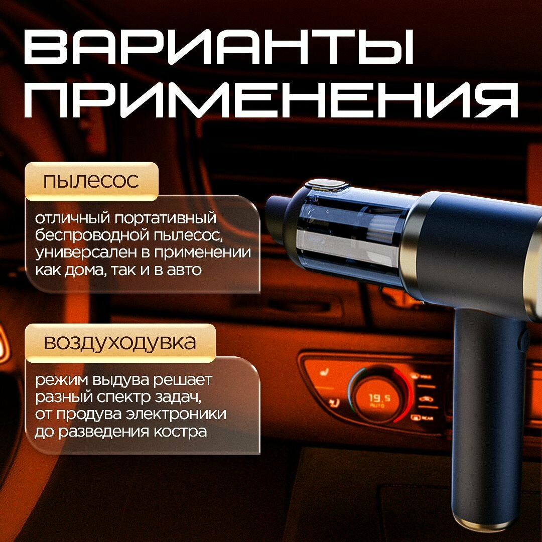 Пылесос для автомобиля мощный беспроводной 2 в 1 с режимом воздуходувки информация: