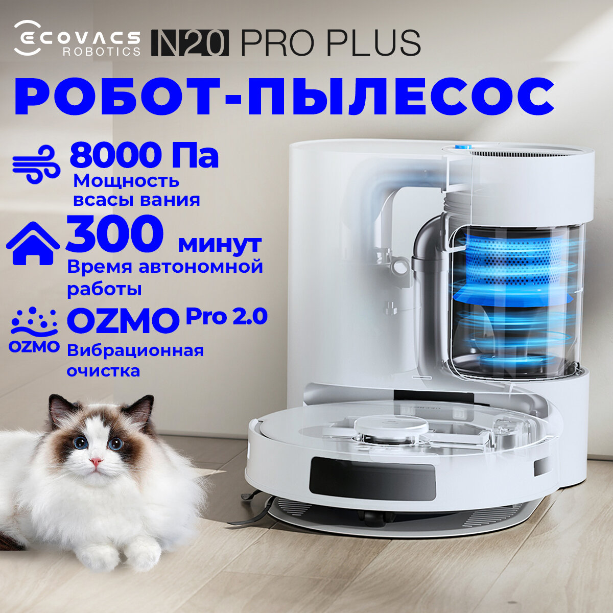 Робот-пылесос с влажной уборкой ECOVACS Deebot N20 PRO Plus информация: