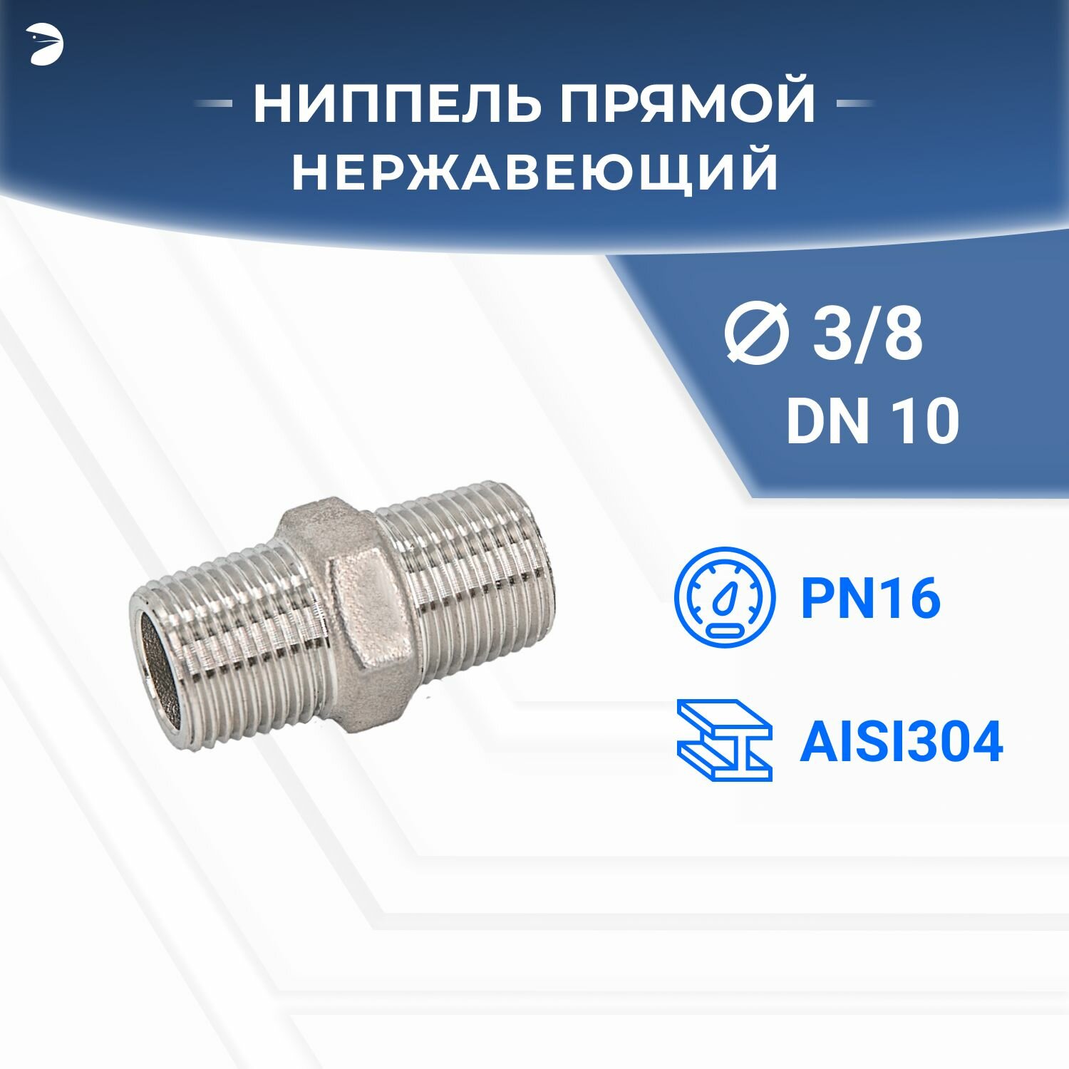 Отзывы на Ниппель резьбовой нержавеющий, AISI304 DN10 (3/8"), (CF8), PN16