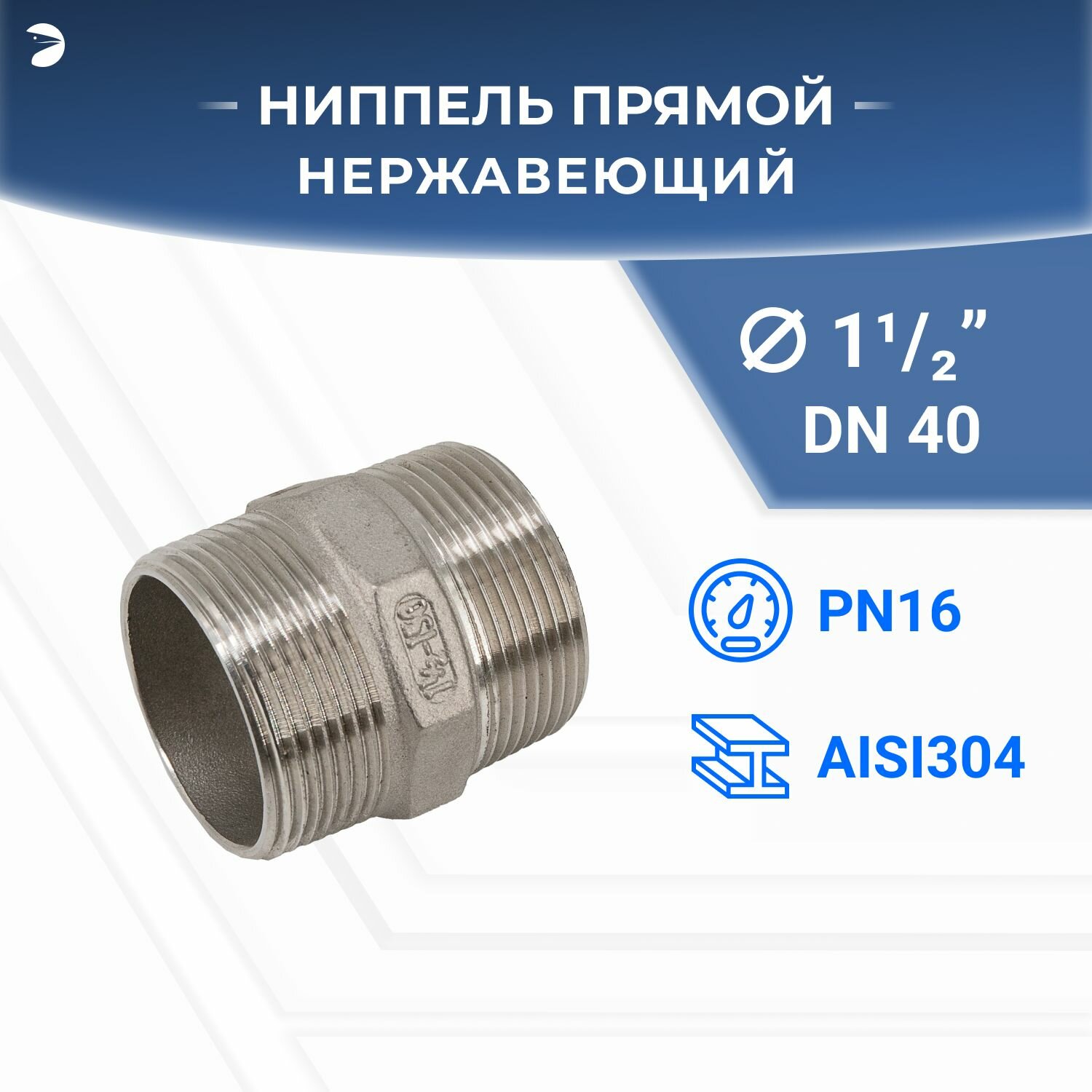 Отзывы на Ниппель резьбовой нержавеющий, AISI304 DN40 (1_1/2"), (CF8), PN16