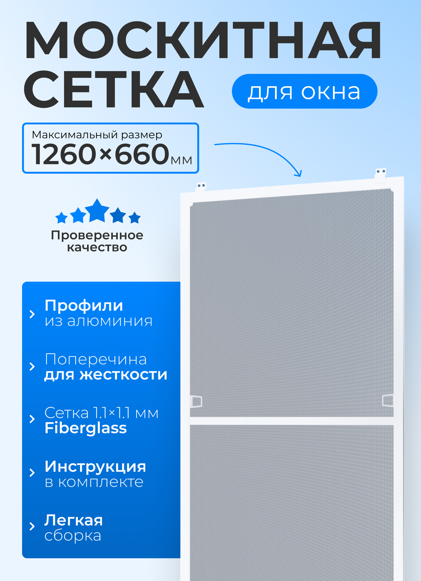 Москитная сетка размером до 1260х660 мм. с креплением, комплект для сборки москитной сетки своими руками информация: