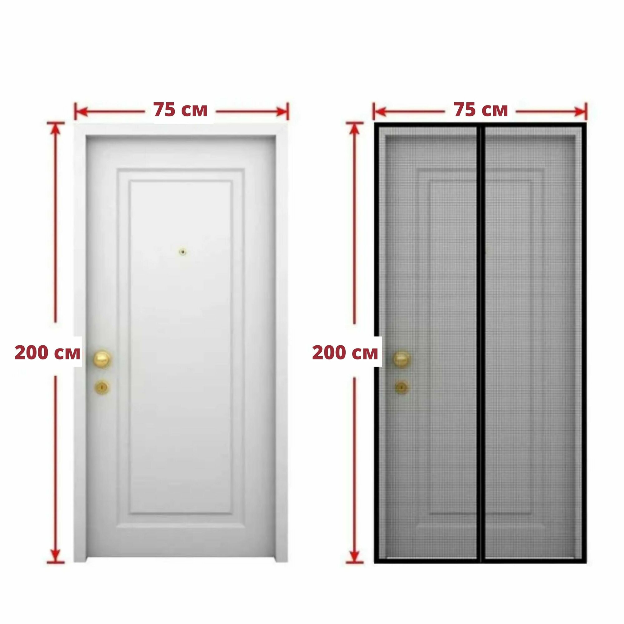 Москитная сетка плотная на дверь чёрная из стекловолокна на магнитах 75x200 cм от мух, комаров, пчел, мошек и пыли /Антимоскитная занавеска штора информация: