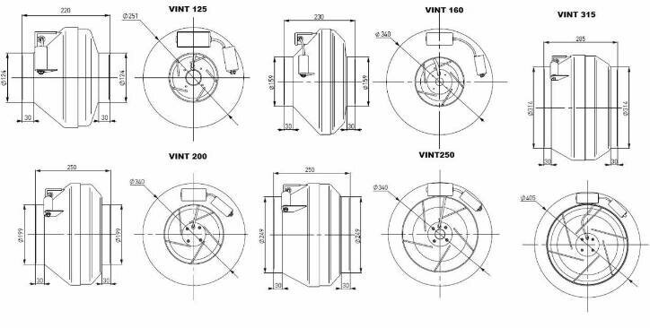 Круглый канальный вентилятор VINT 125 информация: