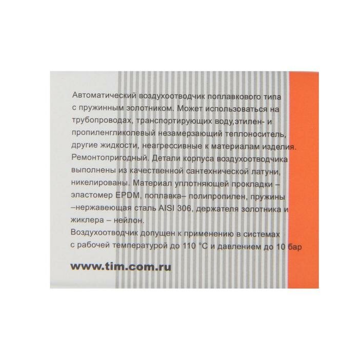 Отзывы на Воздухоотводчик автоматический TIM BL5815, боковой, 1/2", никель