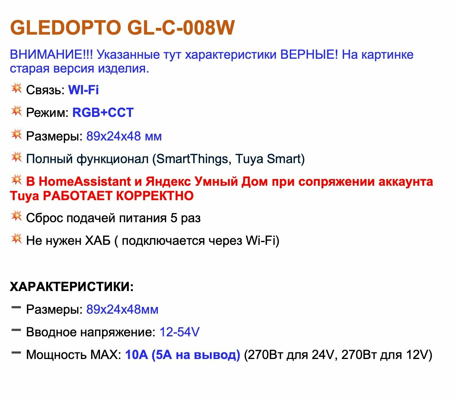 Отзывы на Wi-fi контроллер для светодиодной ленты 12-54V Gledopto RGB+CCT