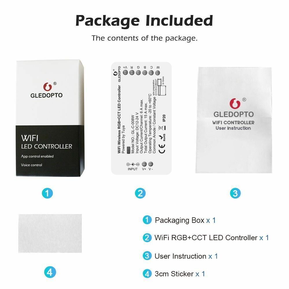 10 цен на Wi-fi контроллер для светодиодной ленты 12-54V Gledopto RGB+CCT