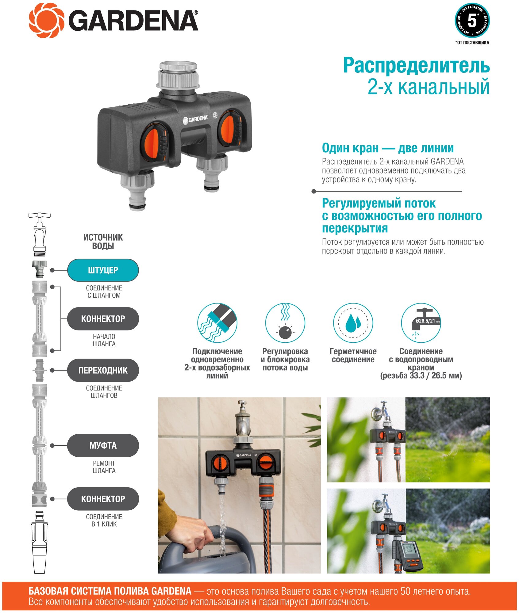 Распределитель GARDENA 1" двухканальный 08193-20.000.00 информация: