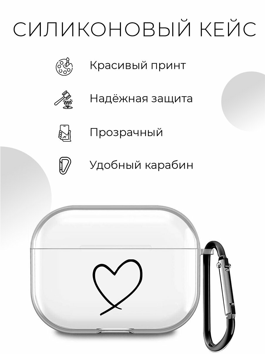10 цен на Силиконовый прозрачный чехол для наушников Apple AirPods 3 / АирПодс 3 с 3D принтом "Heart"