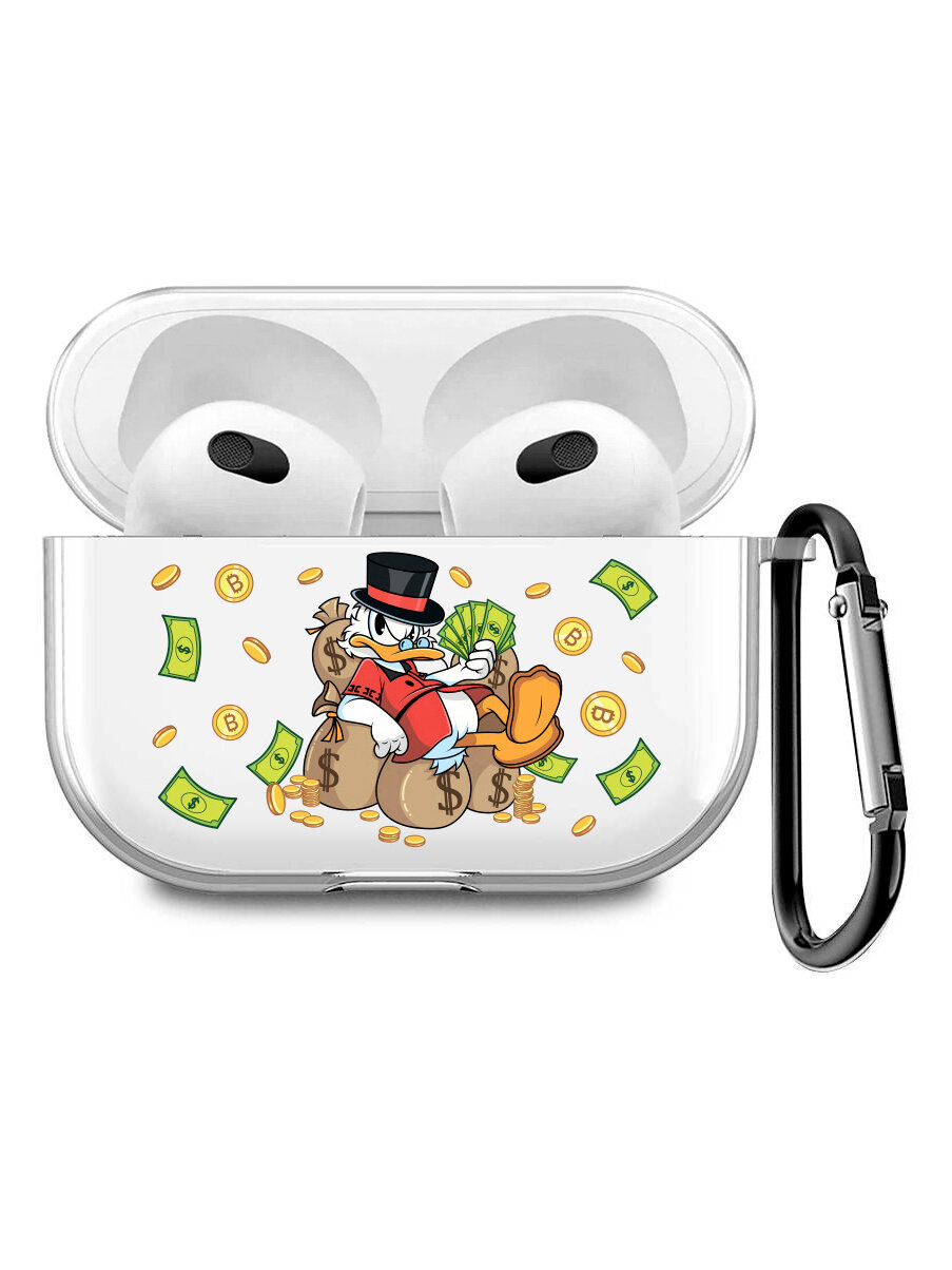 Силиконовый прозрачный чехол для наушников Apple AirPods 3 / АирПодс 3 с 3D принтом "Rich Scrooge" информация: