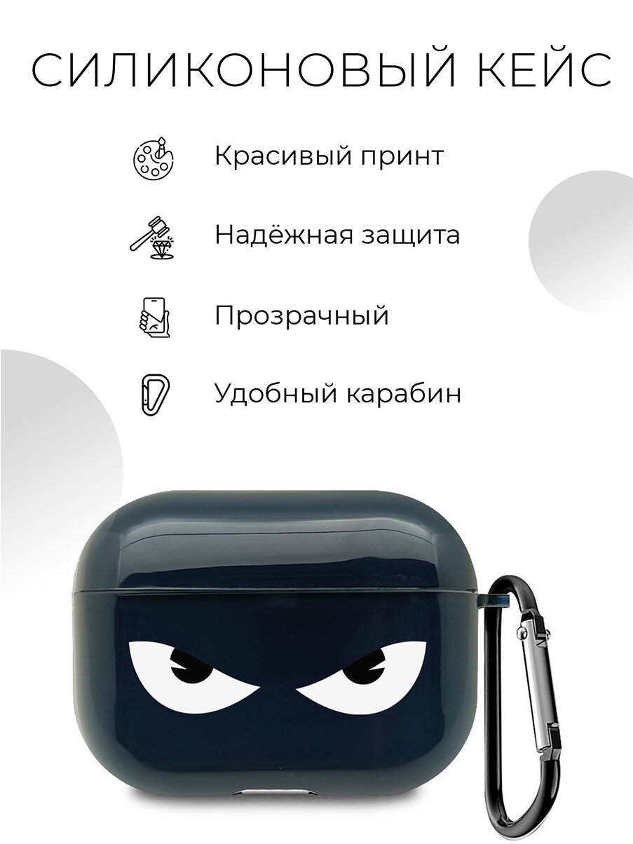 Отзывы на Силиконовый прозрачный чехол для наушников Apple AirPods 3 / АирПодс 3 с 3D принтом "Angry" черный