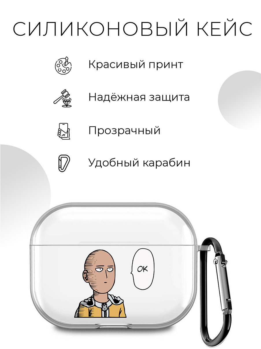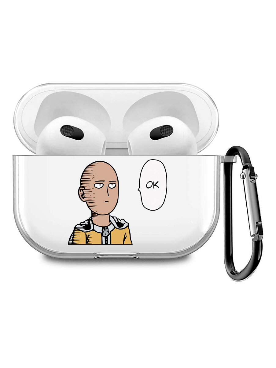 Отзывы на Силиконовый прозрачный чехол для наушников Apple AirPods 3 / АирПодс 3 с 3D принтом "One Punch Man Ok"