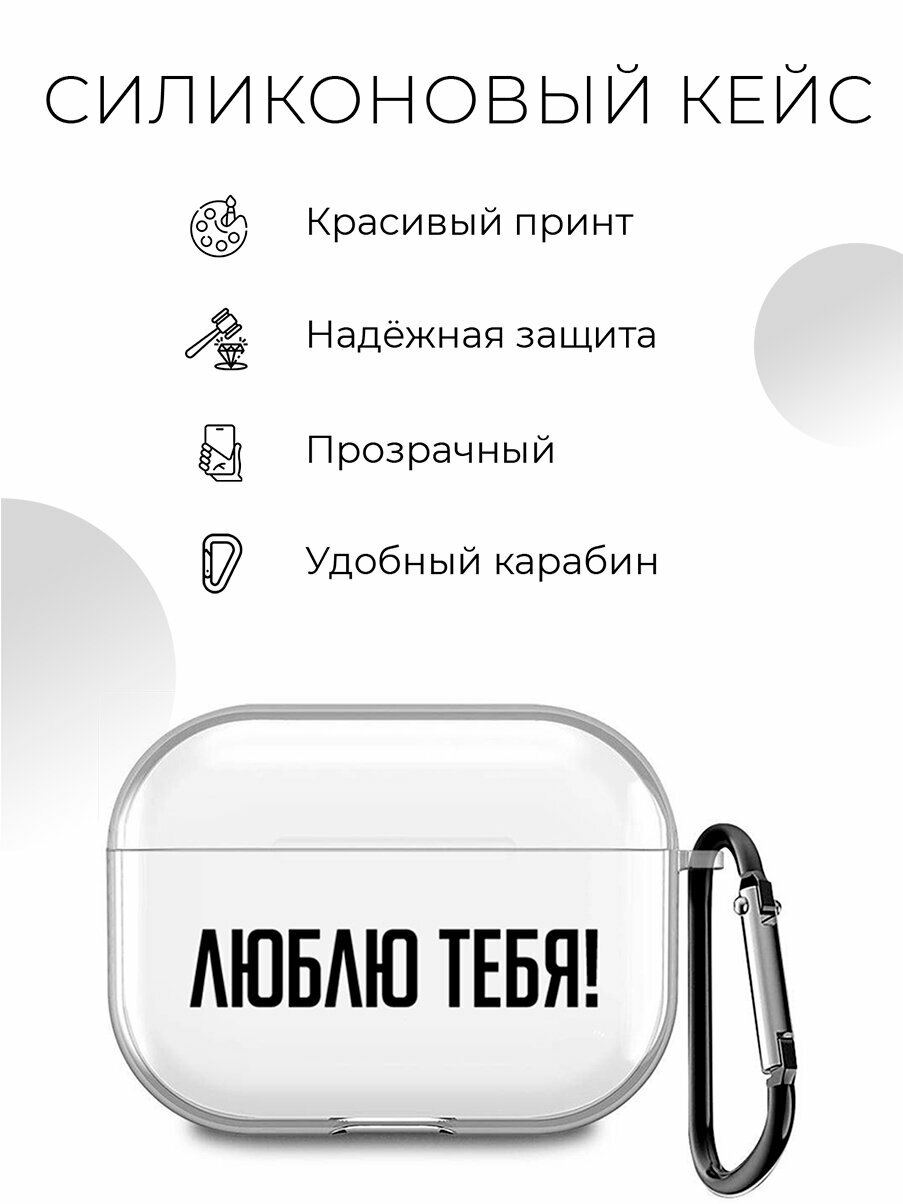 10 цен на Силиконовый прозрачный чехол для наушников Apple AirPods 3 / АирПодс 3 с 3D принтом "I love you!"