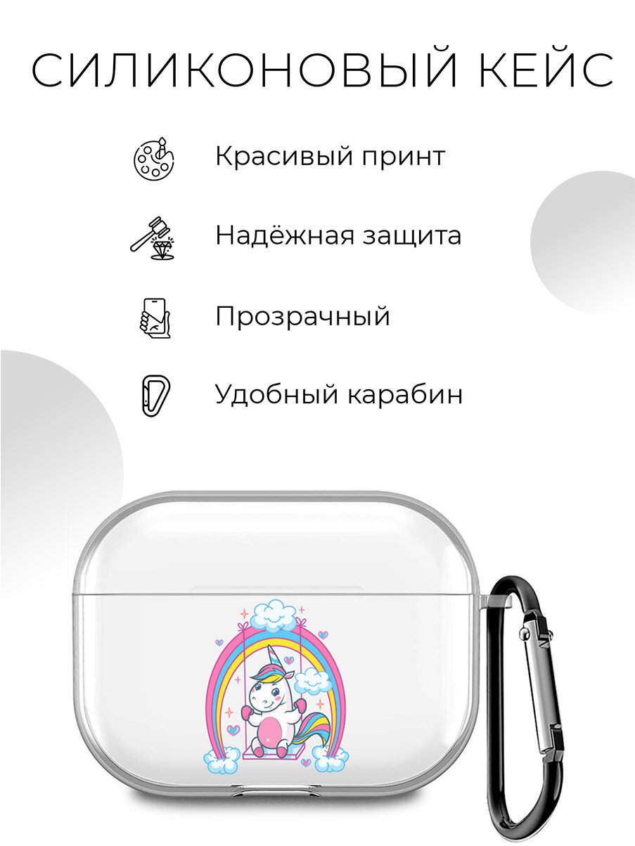10 цен на Силиконовый прозрачный чехол для наушников Apple AirPods 3 / АирПодс 3 с 3D принтом "Unicorn"