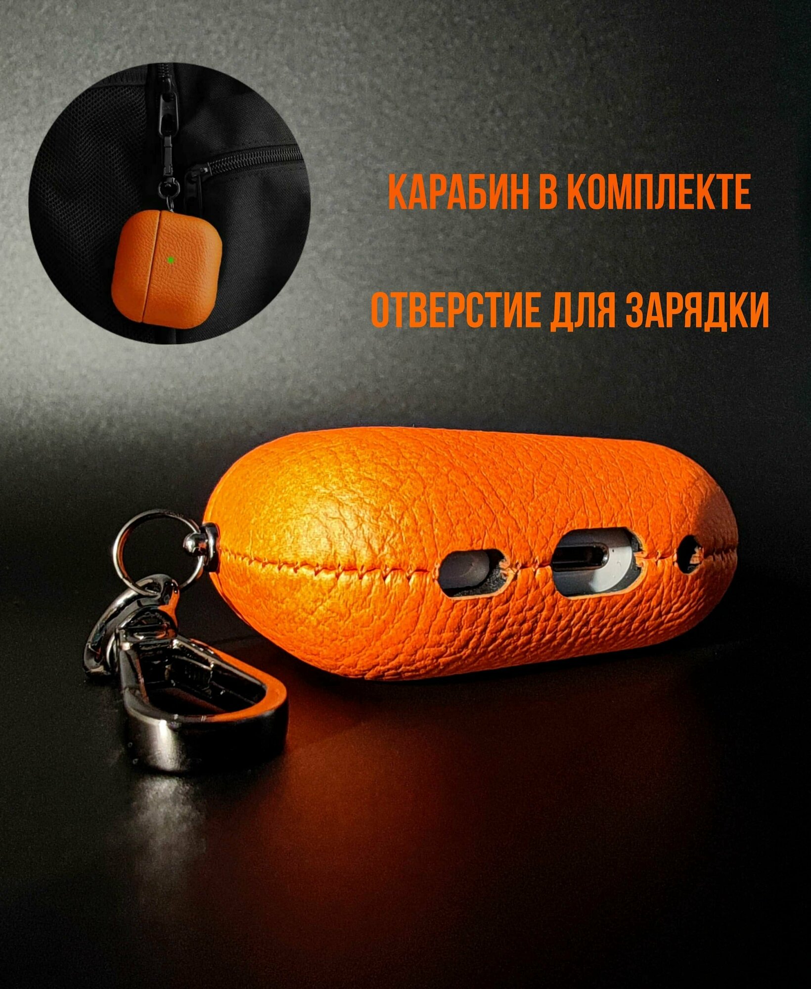 Отзывы на Чехол для наушников Apple Airpods Pro 2 кожаный с карабином рыжий