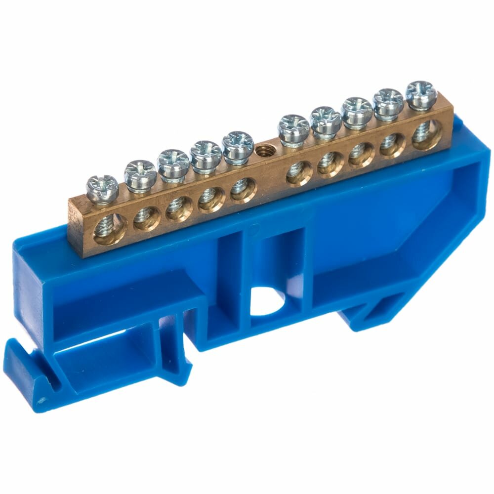 EKF PROxima Шина "0" N (6х9мм) 10 отверстий латунь синий изолятор на DIN-рейку, (1 шт.) информация: