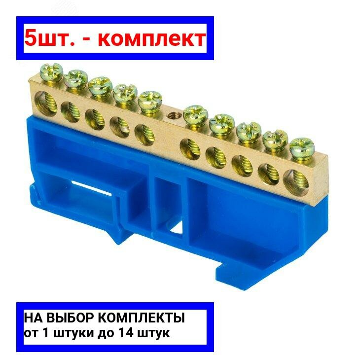 EKF PROxima Шина "0" N (6х9мм) 10 отверстий латунь синий изолятор на DIN-рейку, (1 шт.)