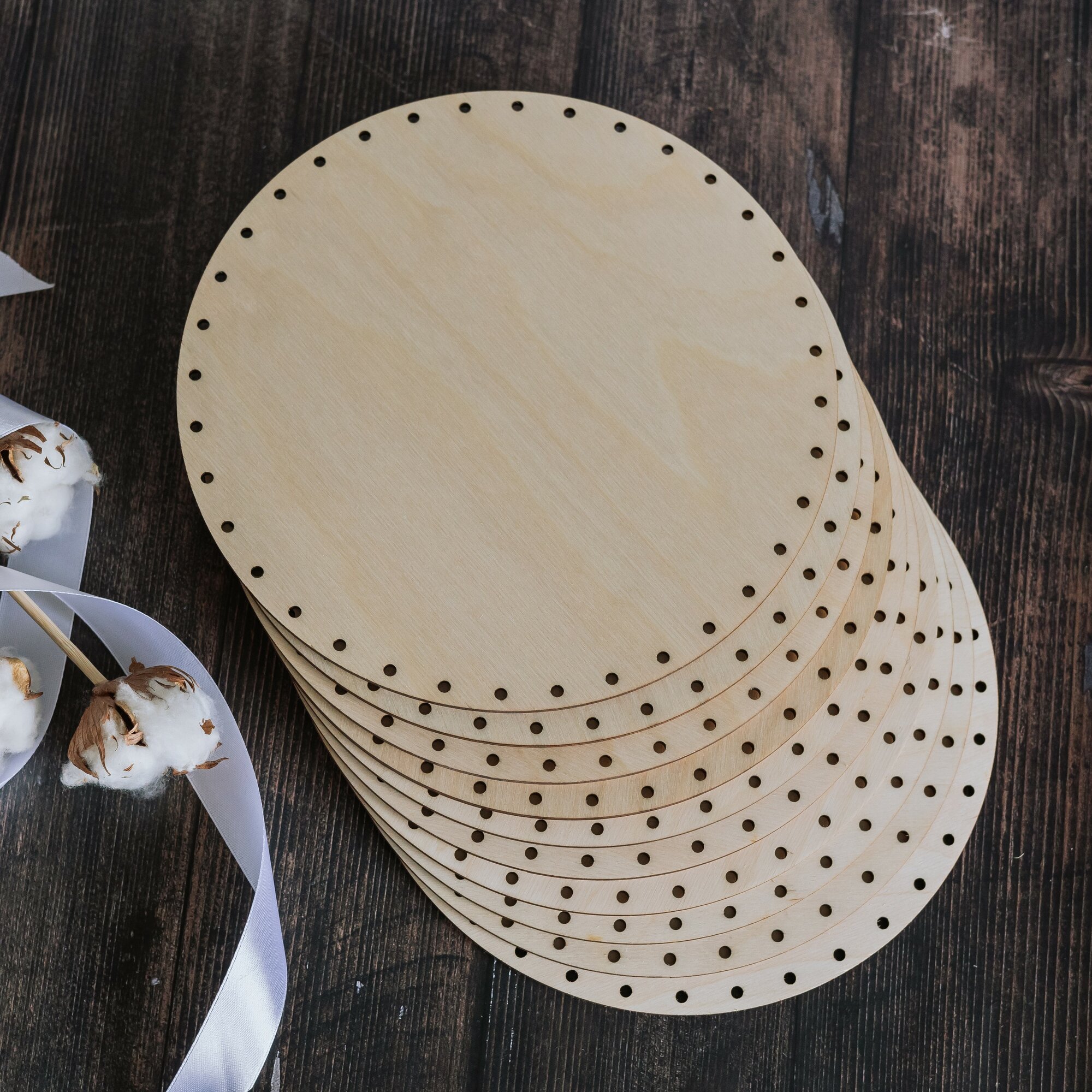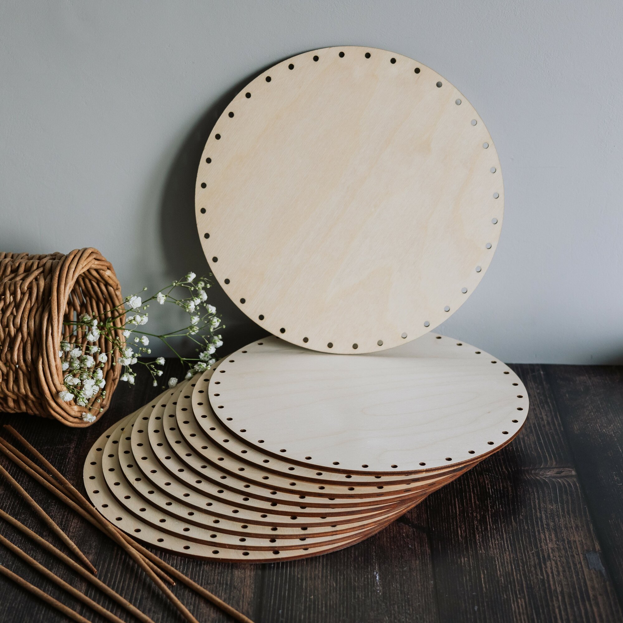 ⌀ 22,5см 10шт отверстия ⌀4мм. Донышко круглое для плетения корзин из бумажной лозы толщина 4мм информация: