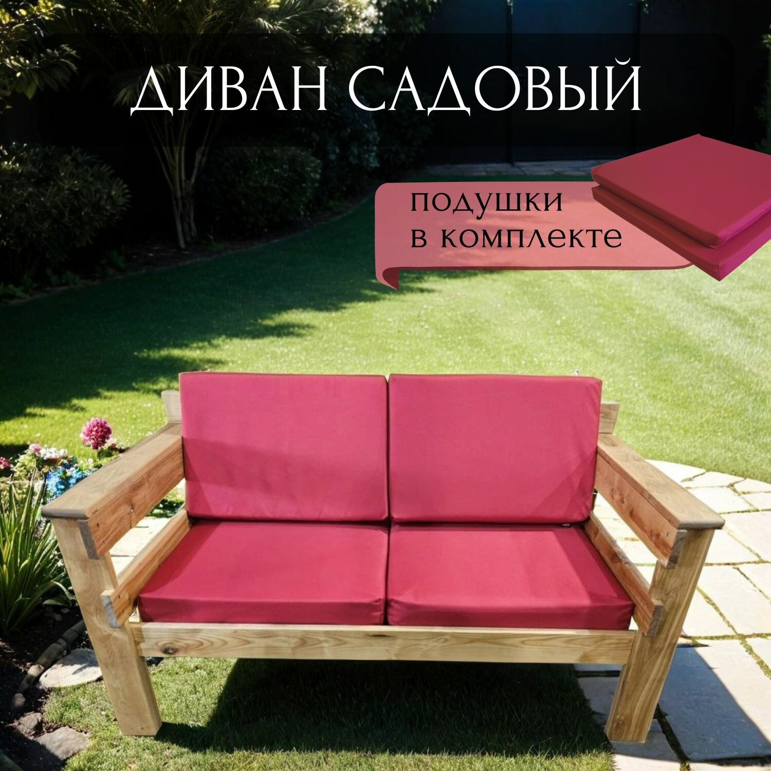 Диван садовый 2х местный WorkyWood, Подушки бордового цвета информация: