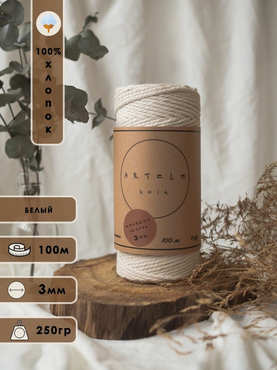Хлопковый шнур для макраме и рукоделия Artele Knit, 3мм., 100м. 699 ₽
