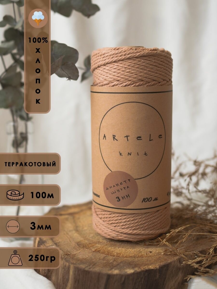 Хлопковый шпагат для макраме и рукоделия ARTELE Knit, 3мм информация: