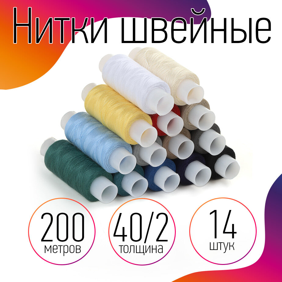 Набор швейных ниток 100 Экстра (40/2) 200 м уп.14 шт ассорти информация: