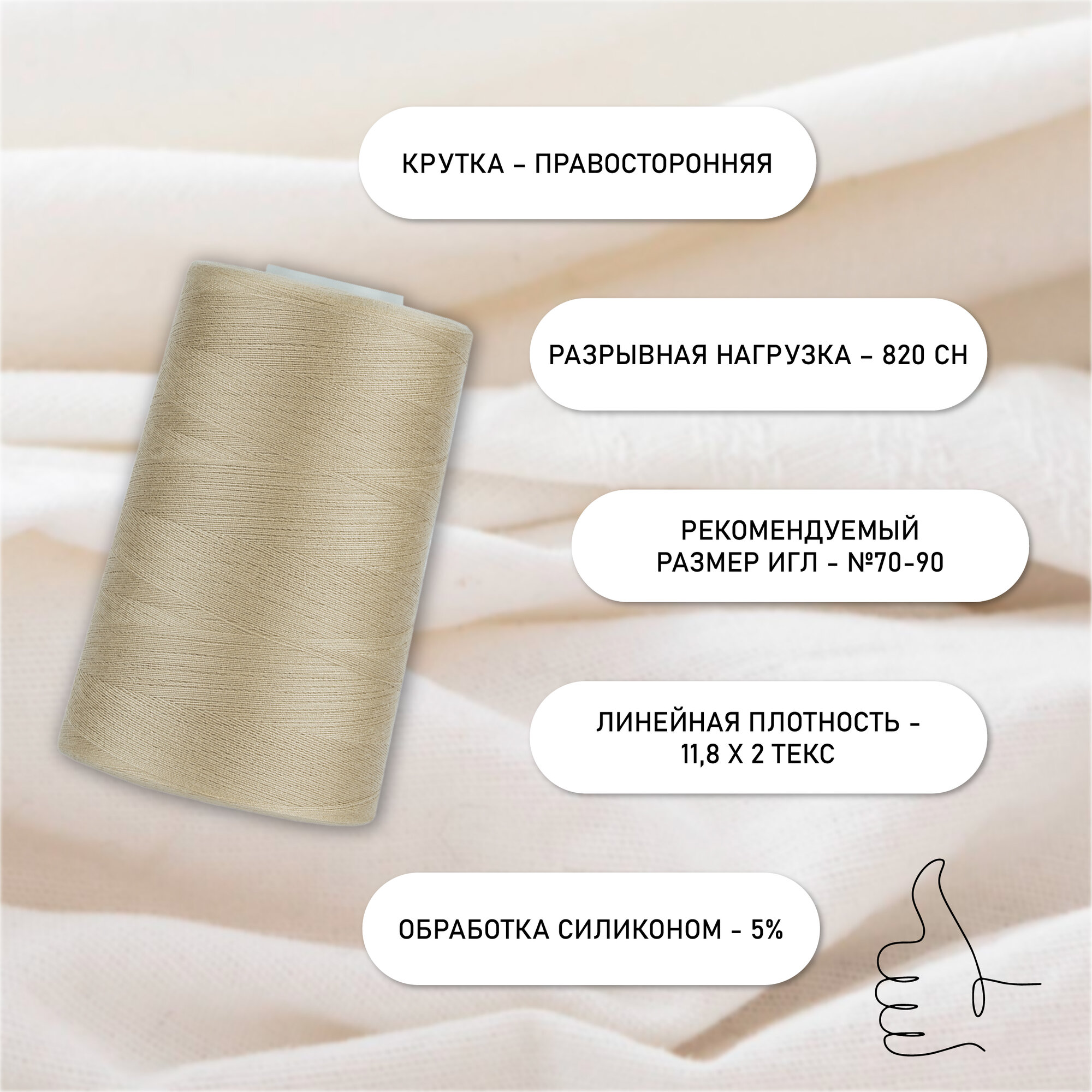 Отзывы на Швейные нитки MAXag basic полиэстер, 5000 ярд, бежевый (2.50/2.POL.465)
