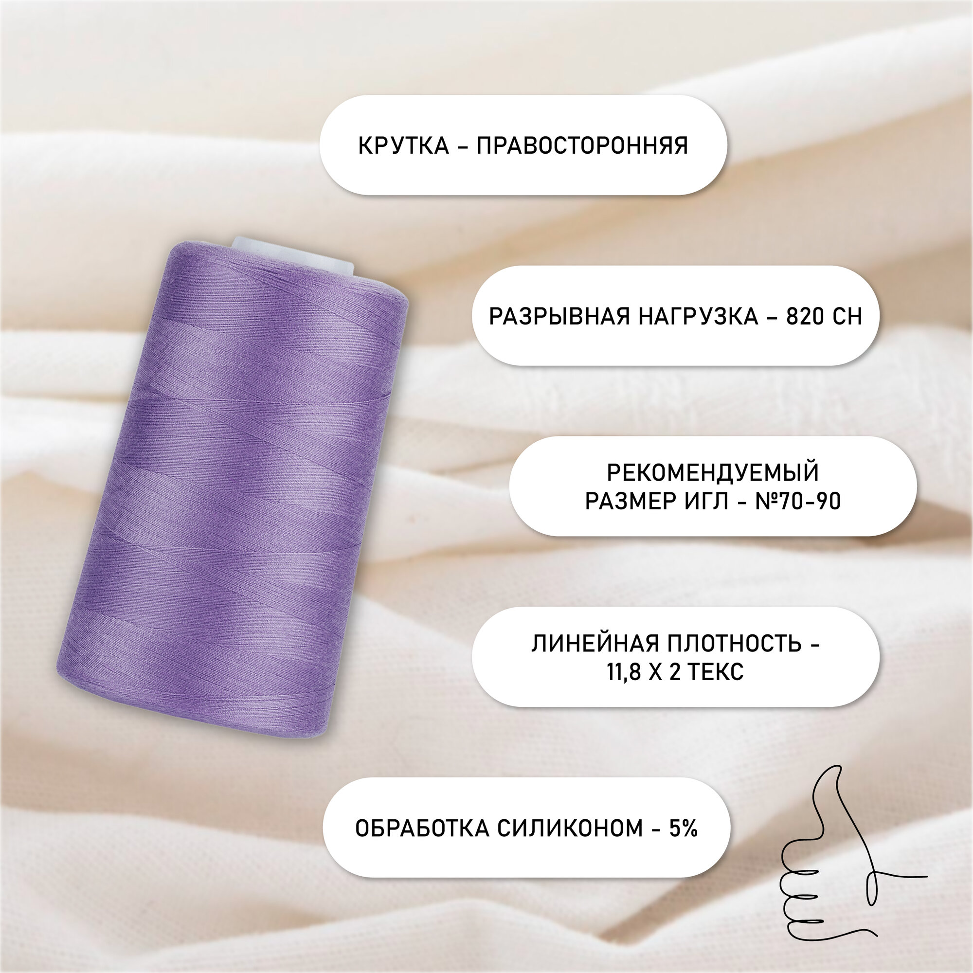 10 цен на Нитки швейные 50/2 полиэстер 5000 ярд цв.326 сиреневый MAX