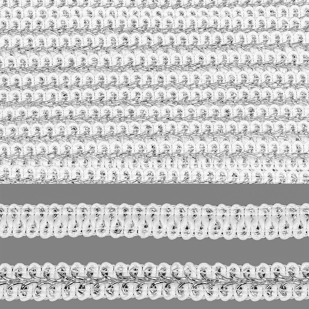Тесьма Шанель плетеная TBY шир.12мм 0384-0018 цв.серебро уп.9м информация: