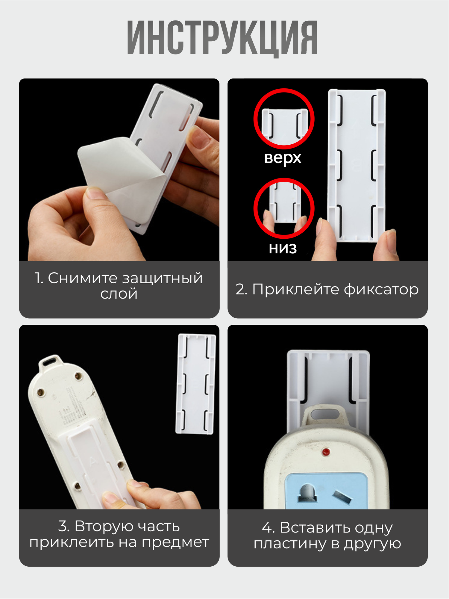 Отзывы на Самоклеящийся держатель для удлинителя ( комплект 2 штуки), цвет - белый