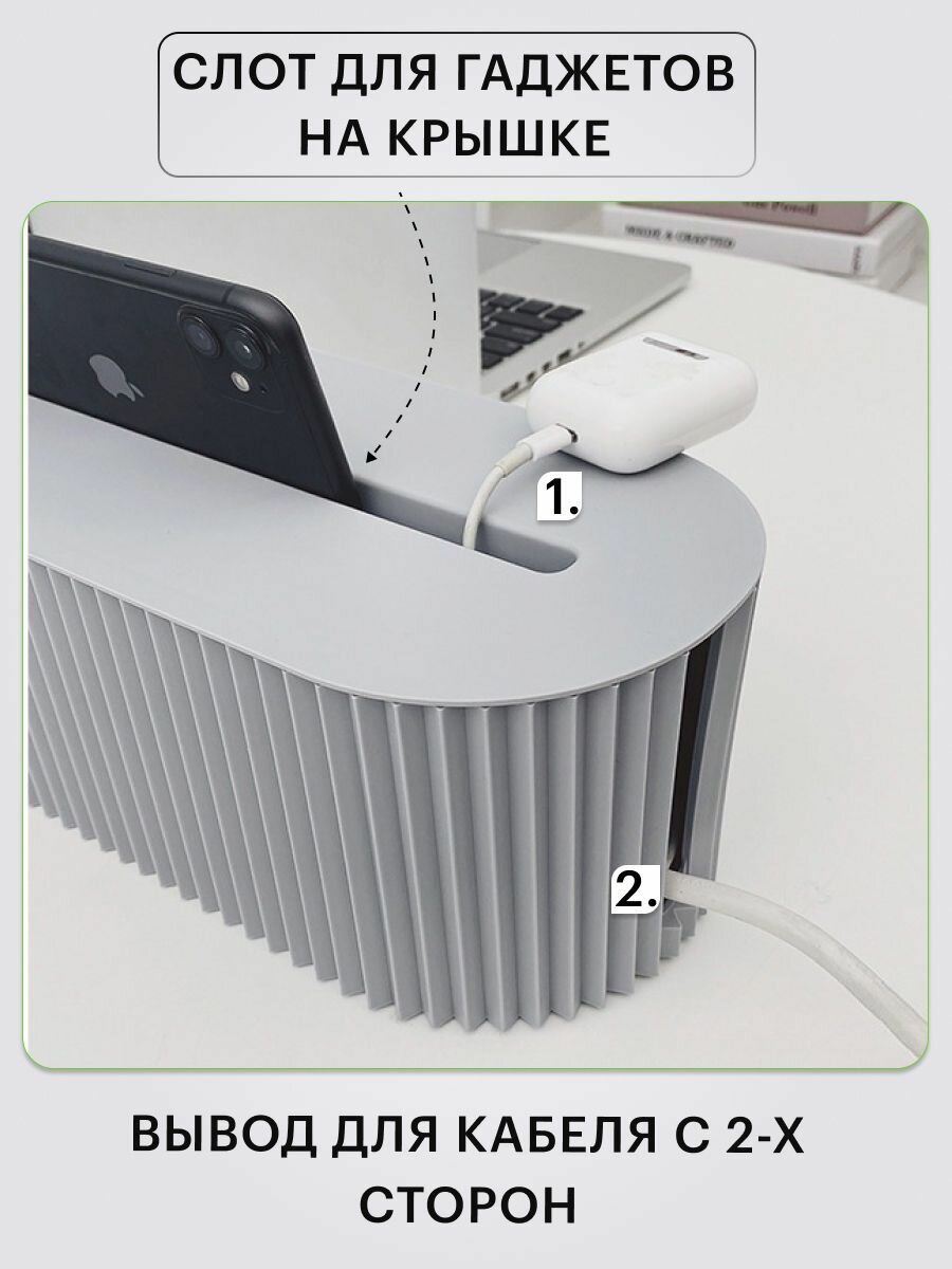 Коробка, Органайзер для проводов, малый (23,5х11,5х12), черный, короб для маскировки сетевых кабелей и шнуров для зарядки