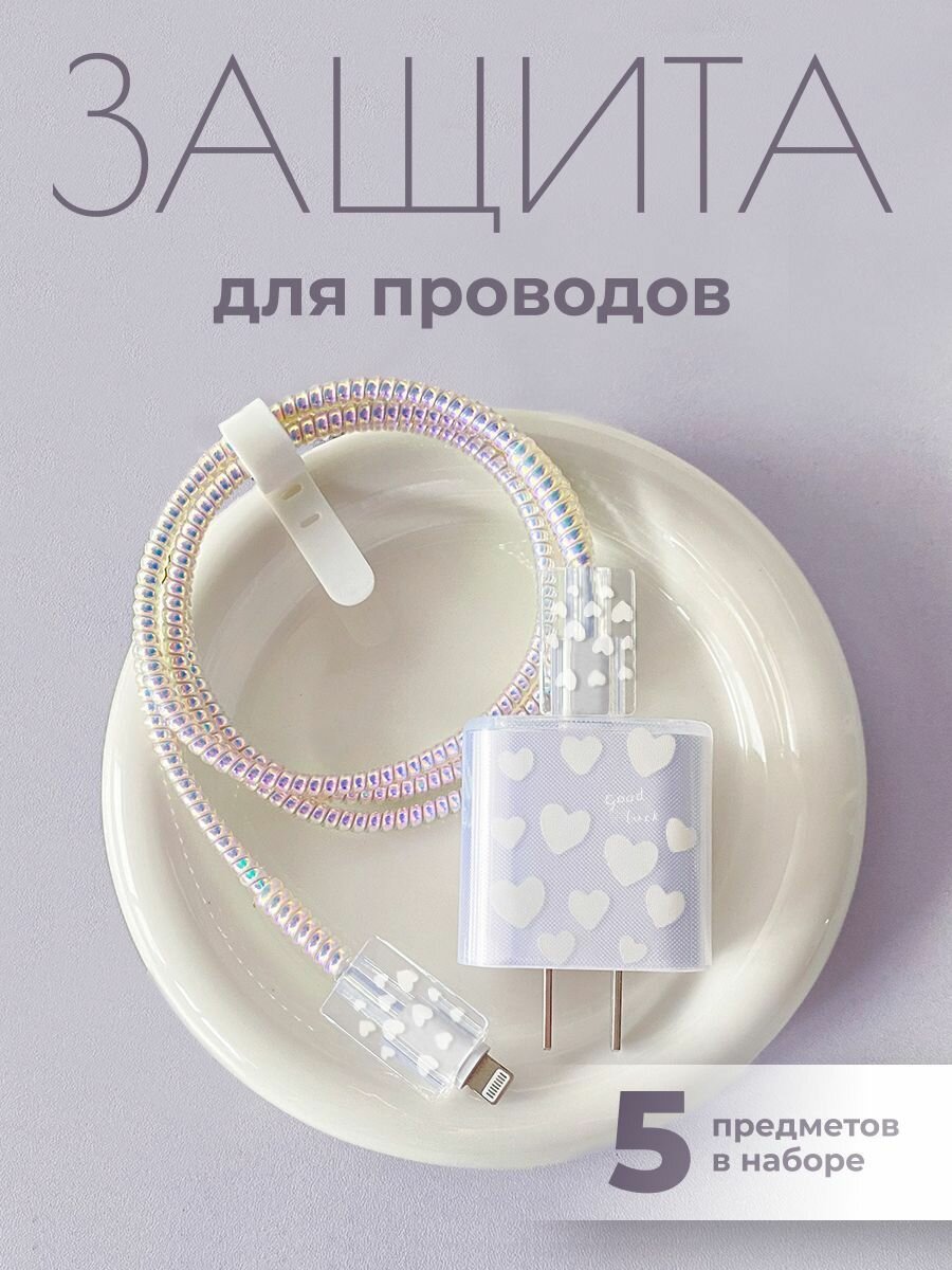 Защита для зарядки iphone, чехол для зарядки MIME, 18/20W, прозрачная разноцветные маленькие сердечки 600 ₽