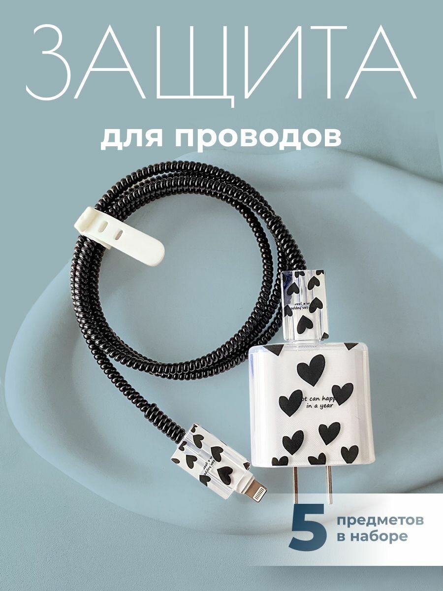 Защита для зарядки iphone, чехол для зарядки MIME, 18/20 Вт W, прозрачная черные большие сердечки 600 ₽