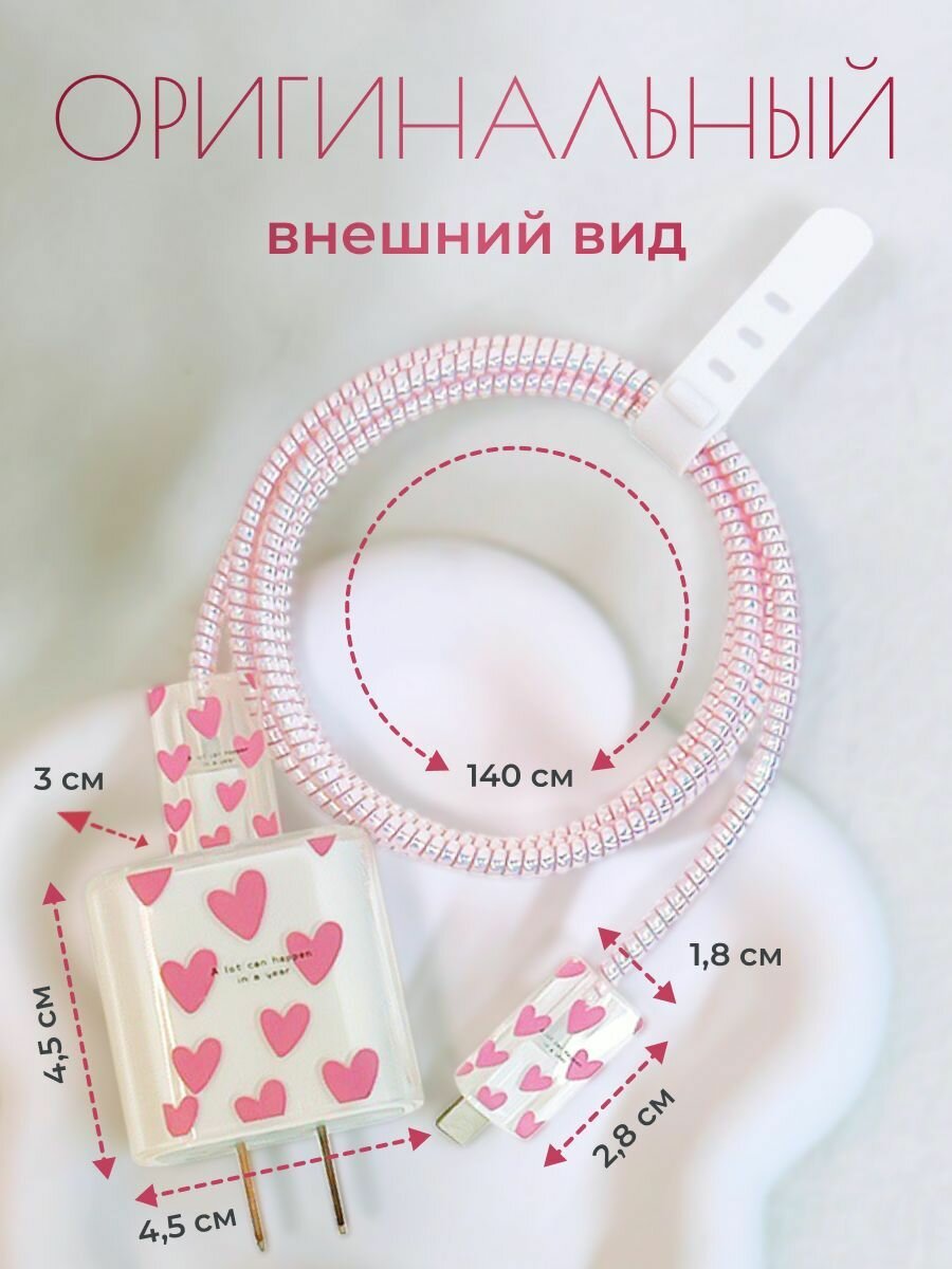 Отзывы на Защита для зарядки iphone, чехол для зарядки MIME, 18/20W, прозрачная светло розовые сердечки