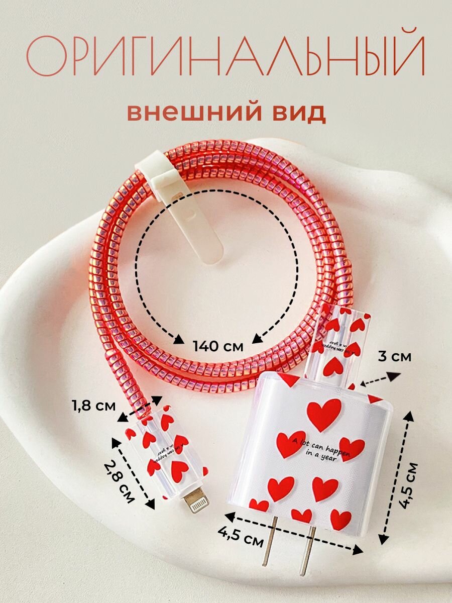 Отзывы на Защита для зарядки iphone, чехол для зарядки MIME, 18/20 W Вт , прозрачная красные сердечки