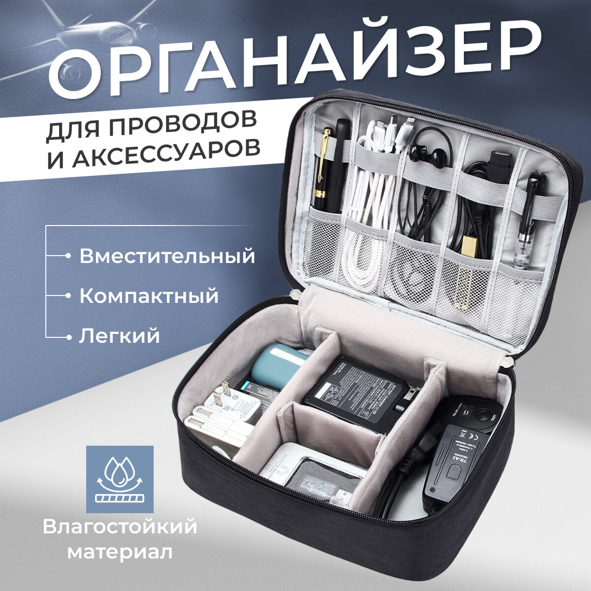 10 цен на Органайзер для хранения проводов, кабелей, аксессуаров и мелочей дома или в дороге, черный