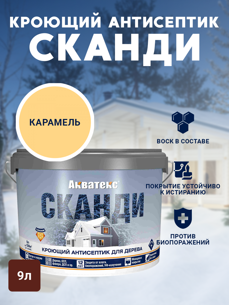 Кроющий антисептик для древесины акватекс сканди (карамель / 9л.) информация:
