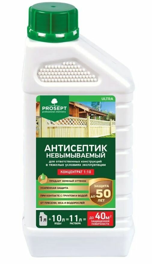 Антисептик невымываемый Prosept ULTRA для ответственных конструкций, концентрат 1:10, 1 л