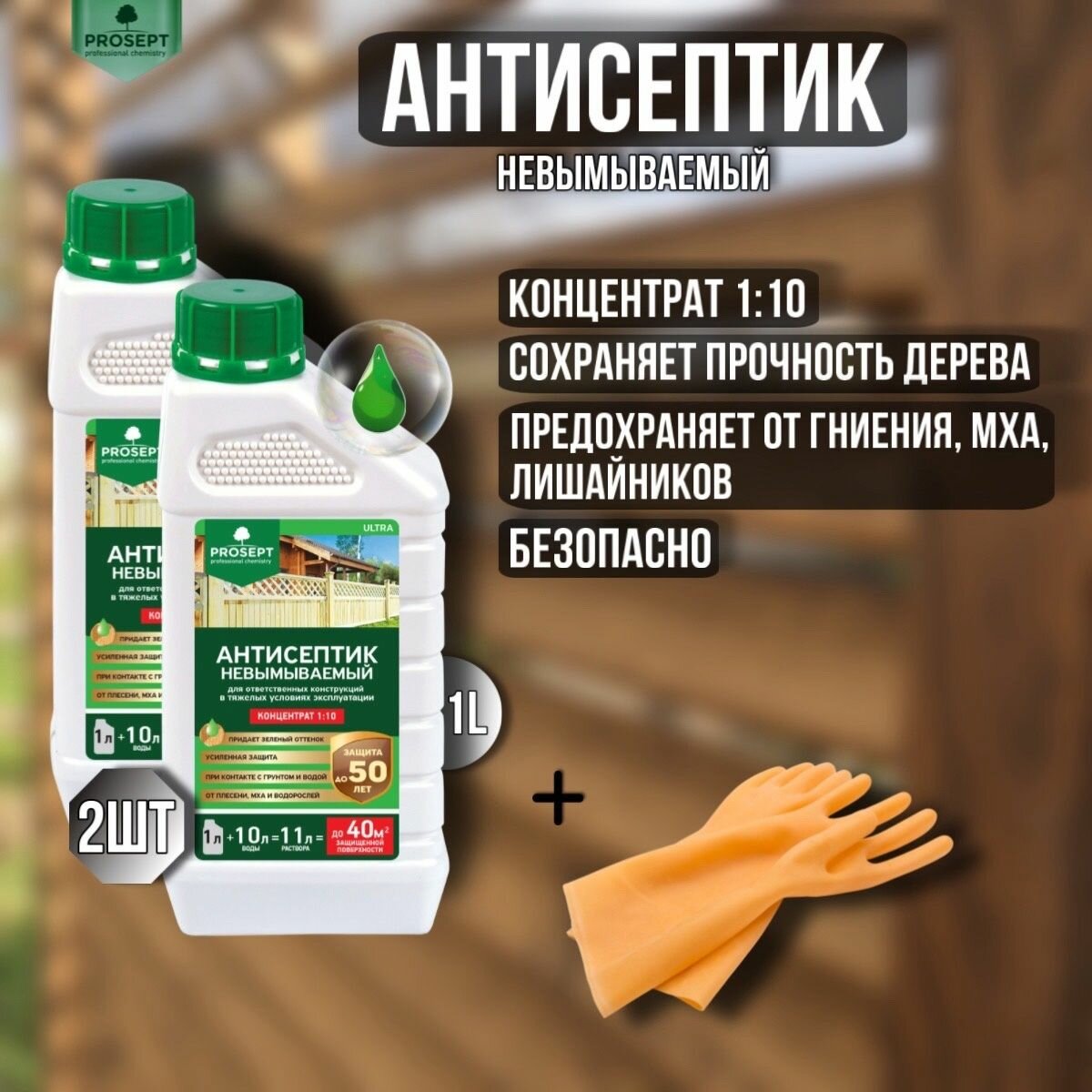 Отзывы на Антисептик невымываемый 2 штуки для ответственных конструкций PROSEPT ULTRA концентрат 1:10 1 литр + перчатки для защиты рук