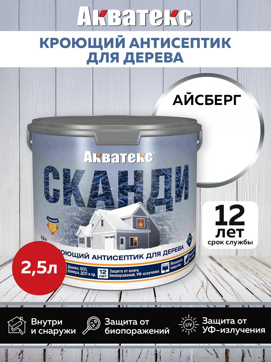 Кроющий антисептик Акватекс Сканди, айсберг, 2,5л информация: