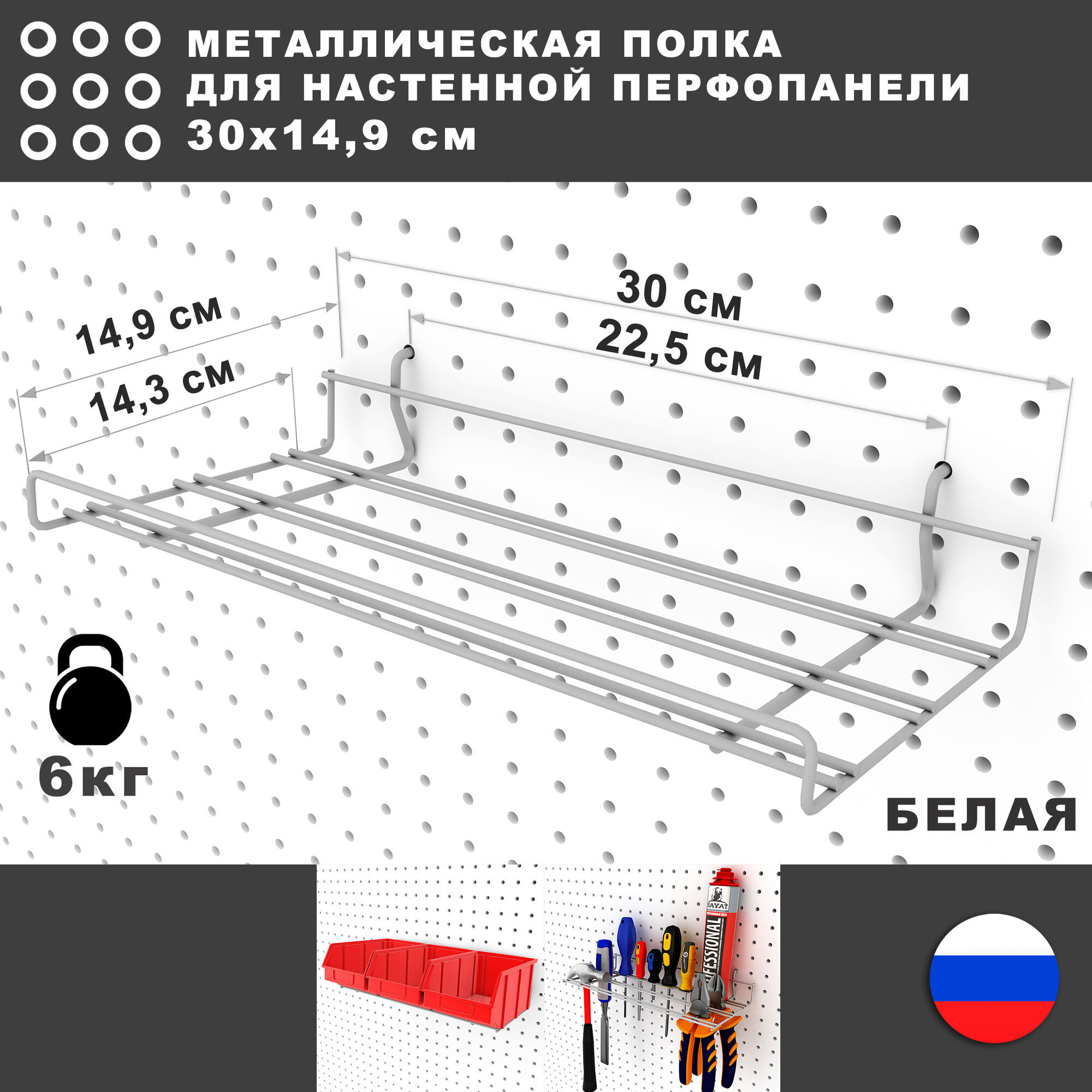 Отзывы на Металлическая полка и 3 серых лотка по 1 литру, 30*17*8 см. Для хранения мелких предметов на перфорированной панели.