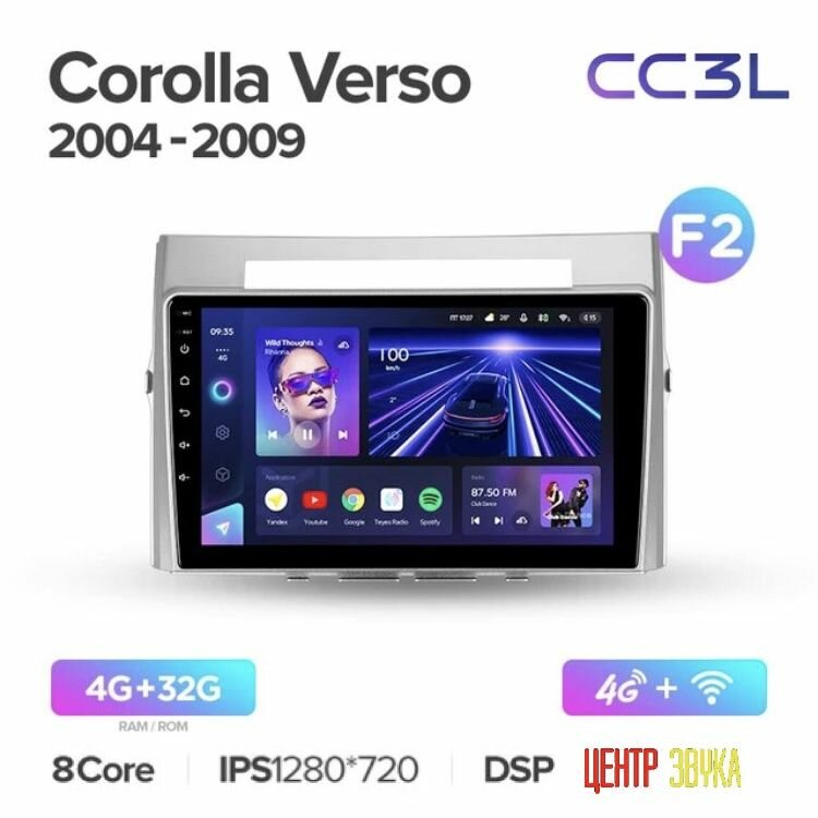 Андроид магнитола Toyota Verso 2004-2009, Teyes CC3L 4/32 ГБ, Android 10 API29, процессор 8 ядер 1.6Ггц, экран IPS, 4G+Wi-Fi, GPS+Глонасс, DSP