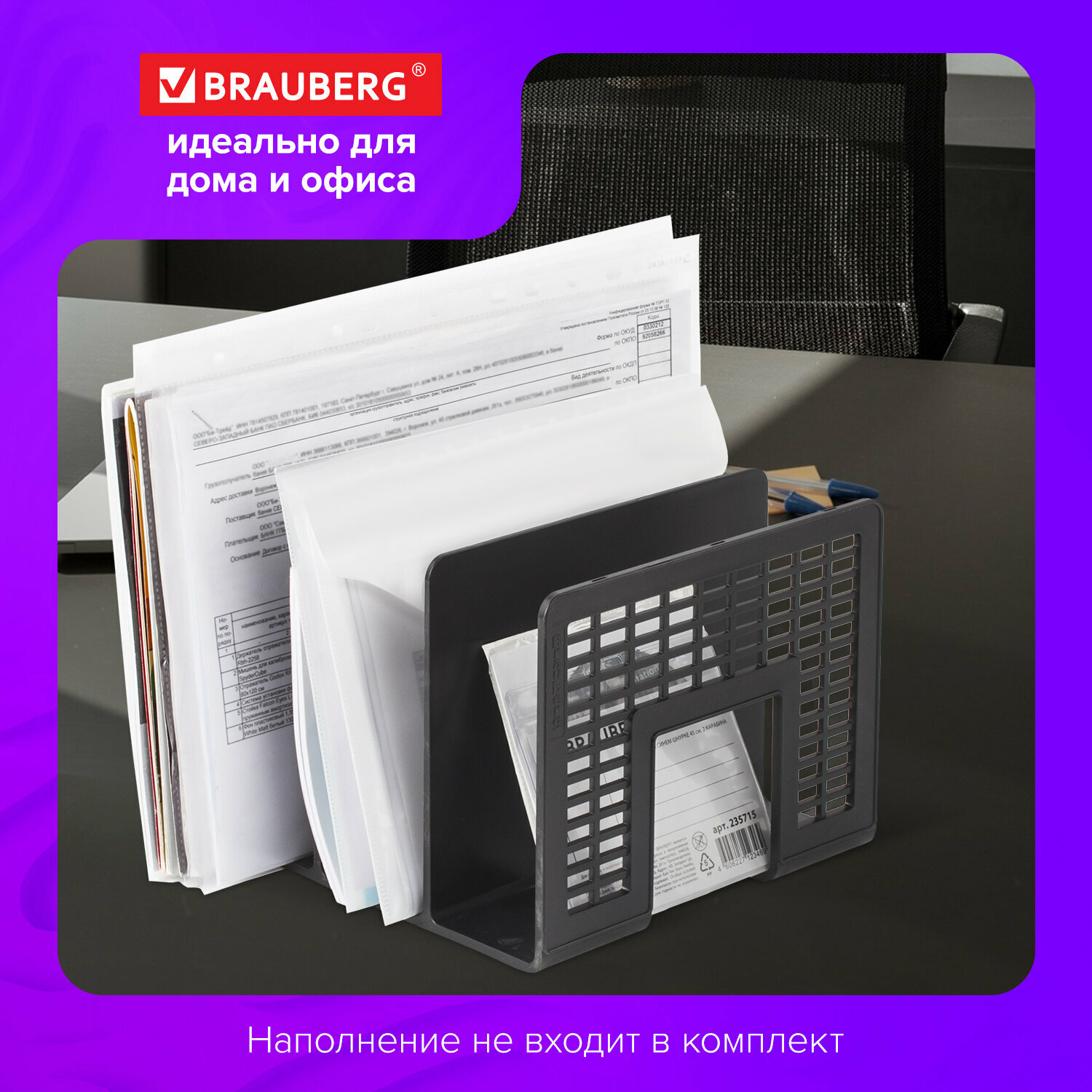 Отзывы на Лоток/подставка/органайзер вертикальный канцелярский для документов/бумаг/файлов пластиковый Brauberg "Radikal" (207х212х165 мм), черный, 235364