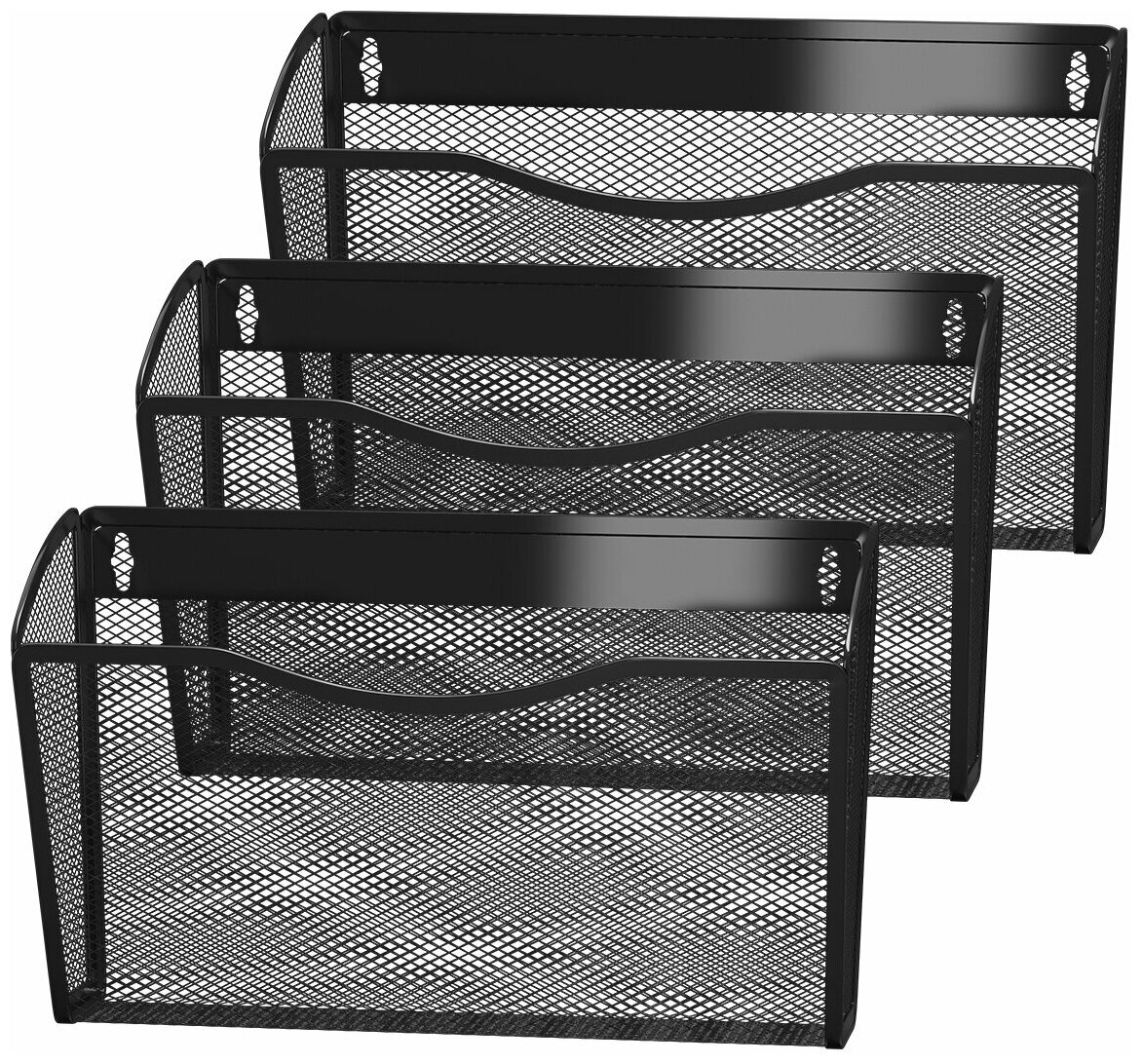10 цен на Лоток / подставка / органайзер настенный канцелярский для документов / бумаг Brauberg Germanium, 3 штуки, А4, 215х355х95 мм, металл, черный, 237968