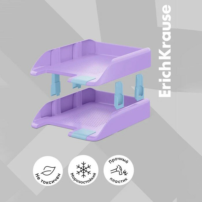 Набор из 2 пластиковых лотков-трансформеров для бумаг ErichKrause® Techno, Powder, бежевый