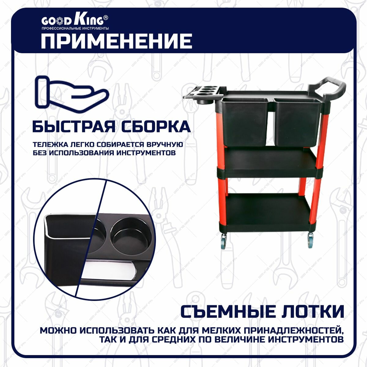 Тележка инструментальная 3-х полочная Goodking IT-10003 информация: