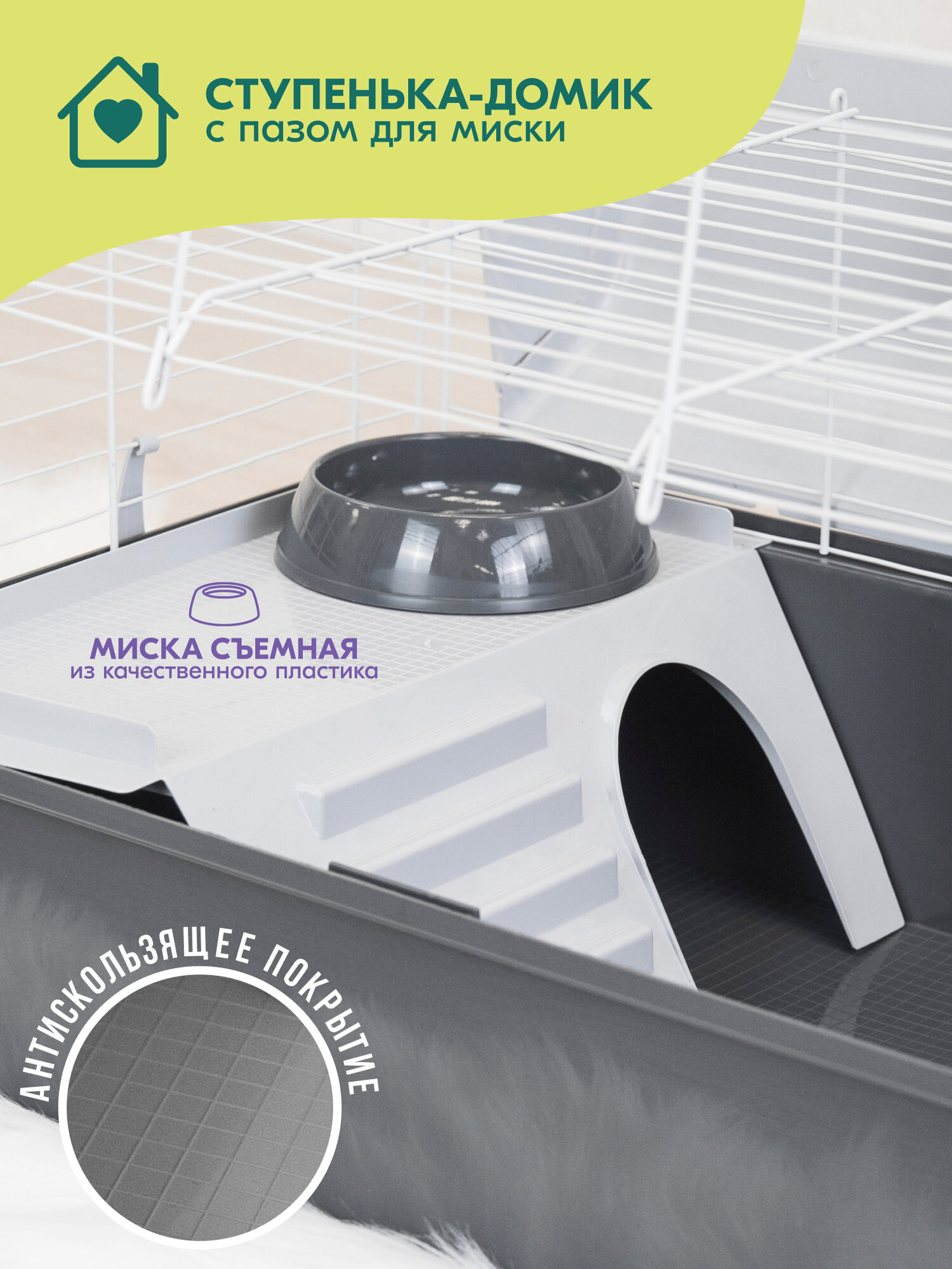 Отзывы на Клетка для кроликов "PetTails" джером № 1 складная с этажом-домиком, шаг прута 18мм; 78*48*h34см (+миска, 2 кормушки) сер-бел