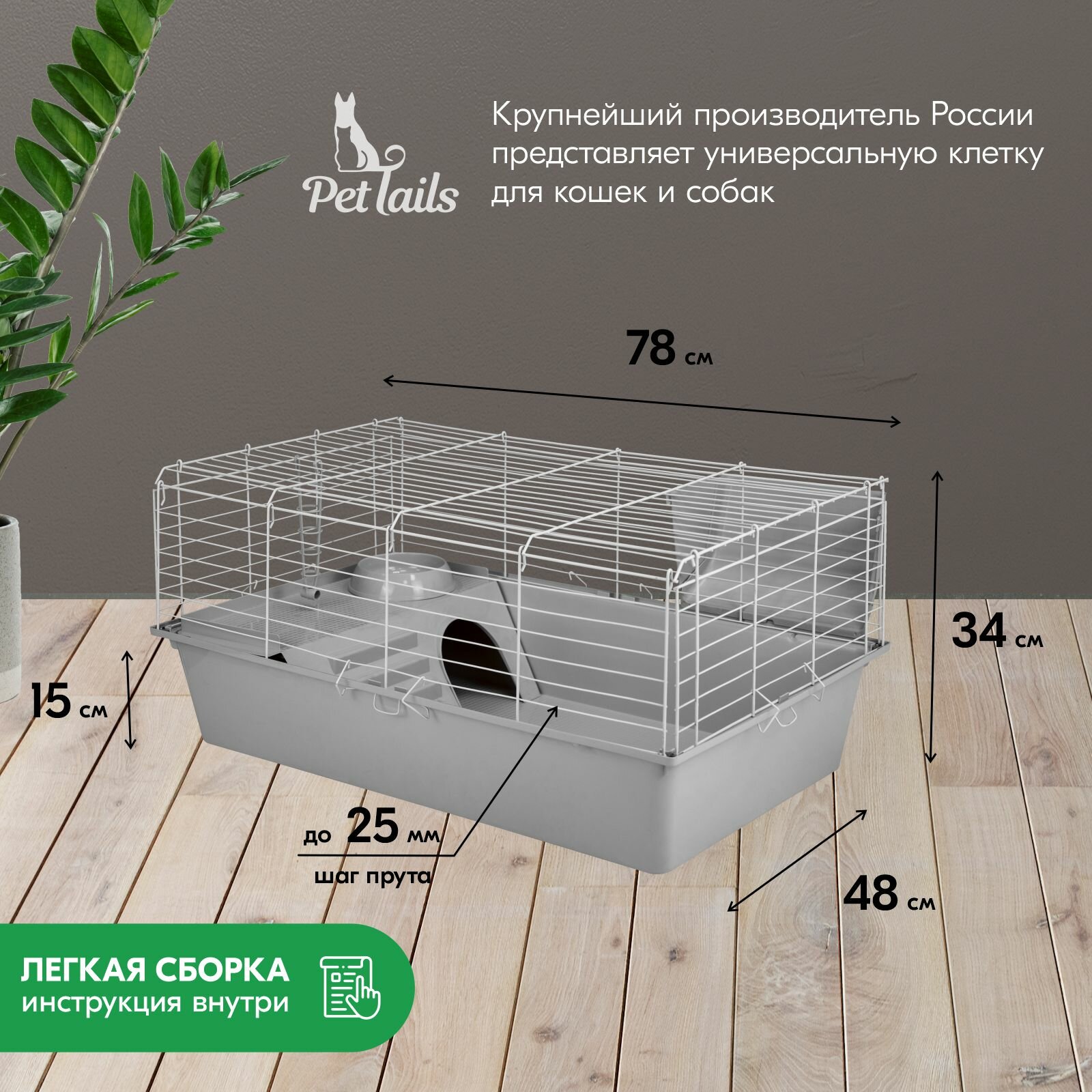 Отзывы на Клетка для кроликов "PetTails" джером № 1 складная с этажом-домиком, шаг прута 18мм; 78*48*h34см (+миска, 2 кормушки) светло-серый-бел