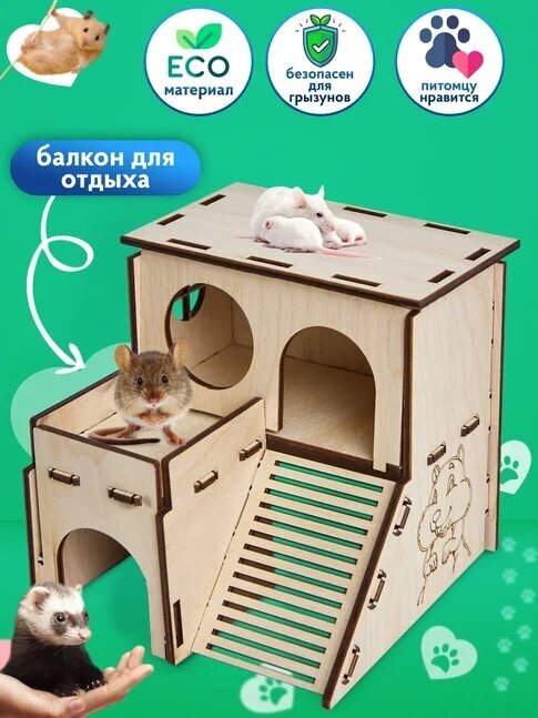 Домик для крыс, для хомяка, домик для грызунов деревянный информация:
