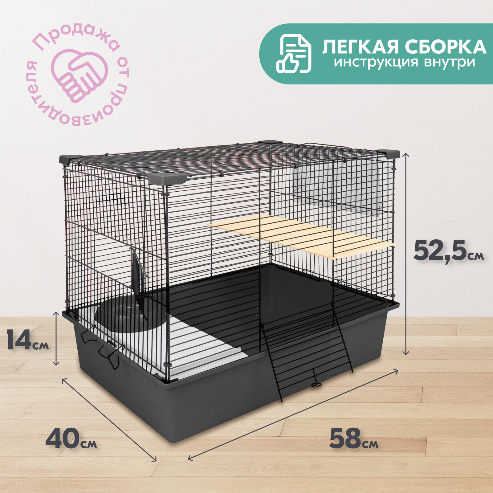 Клетка для шиншилл PetTails № 1, разборная, шаг прута до 14мм; 58х40хh52,5см, серая информация: